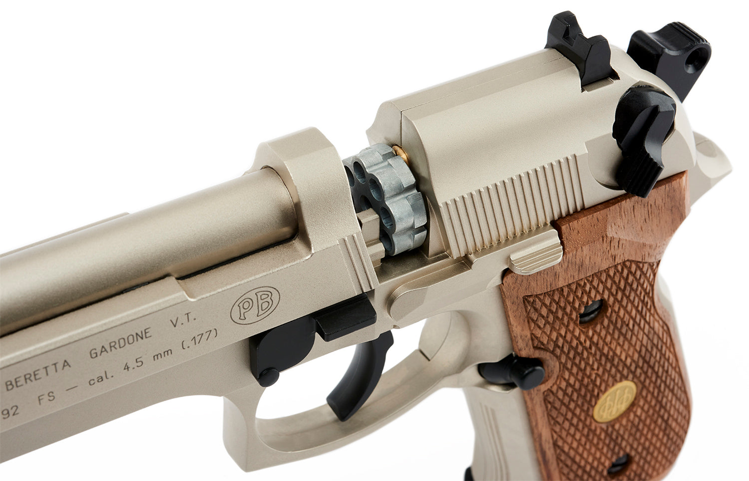 - Model: M 92 FS Nickel/Wood