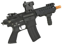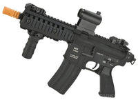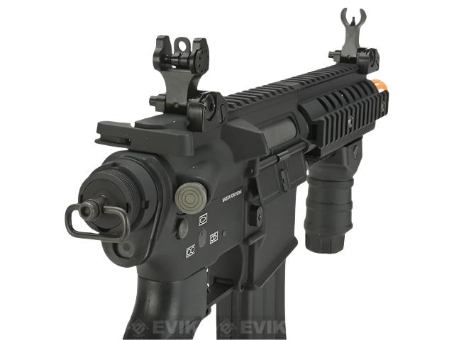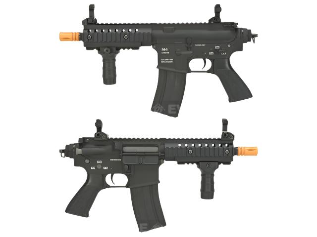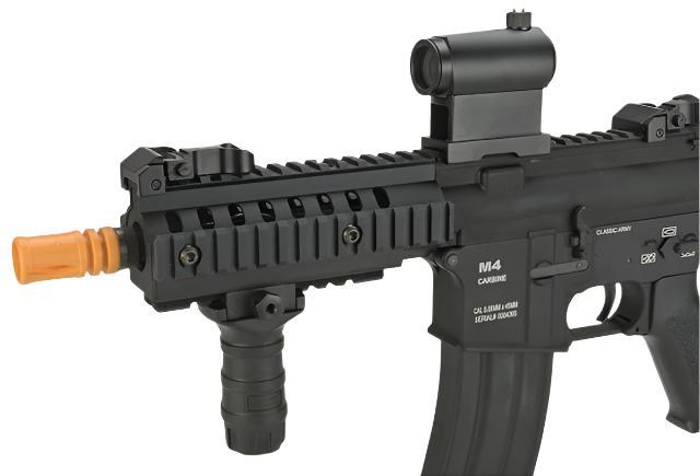 The Classic Army Full Metal M4 Airsoft AEG is designed for ultra close-quarters combat while also excelling in midrange engagements. Moreover, it features a 9mm bearing gearbox that delivers 360-380 FPS with 0.20g BBs. Additionally, it achieves a rate of fire between 750-850 rpm using a 9.6V battery. Furthermore, its 6-inch railed handguard is compatible with most 20mm accessories.