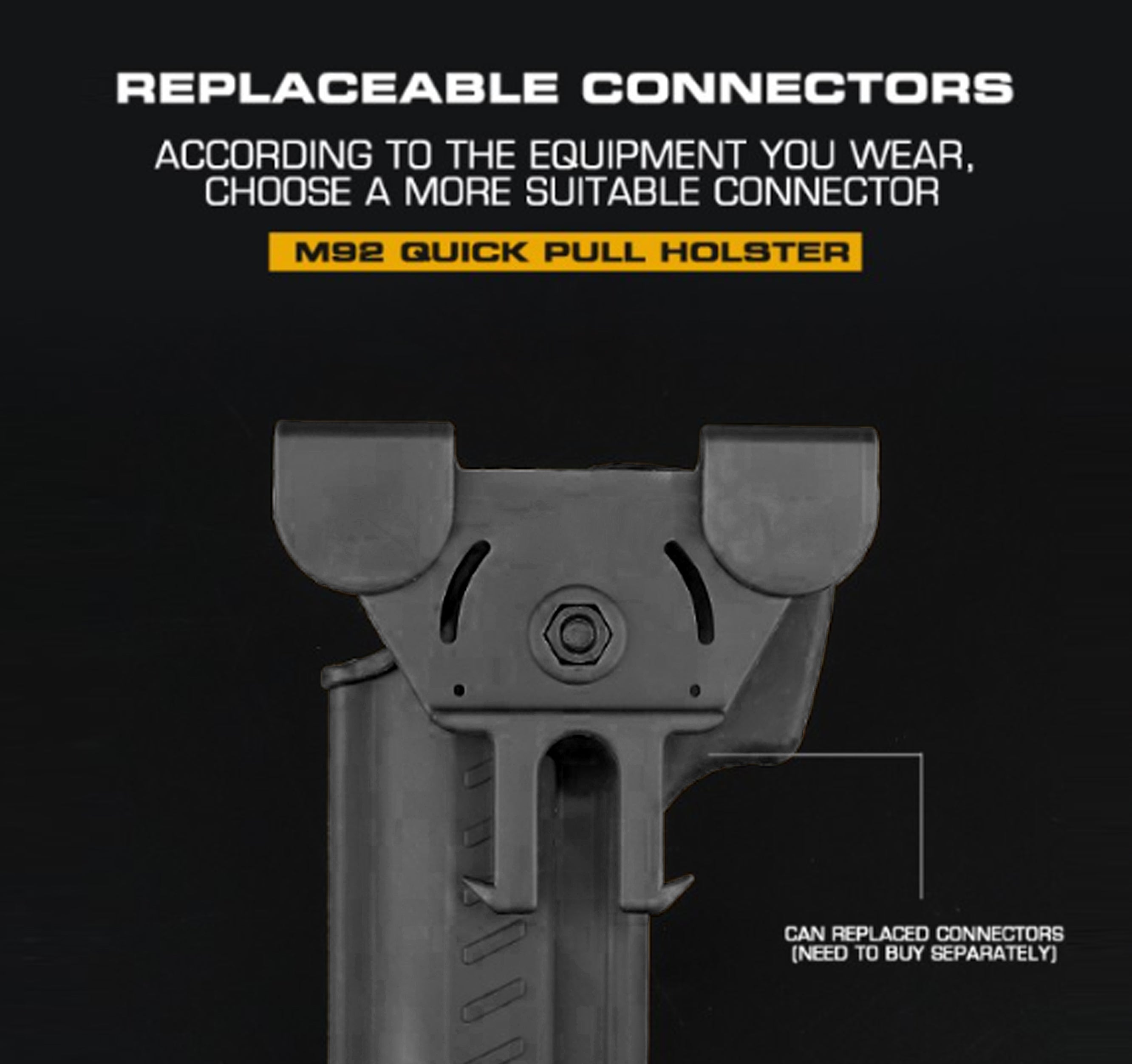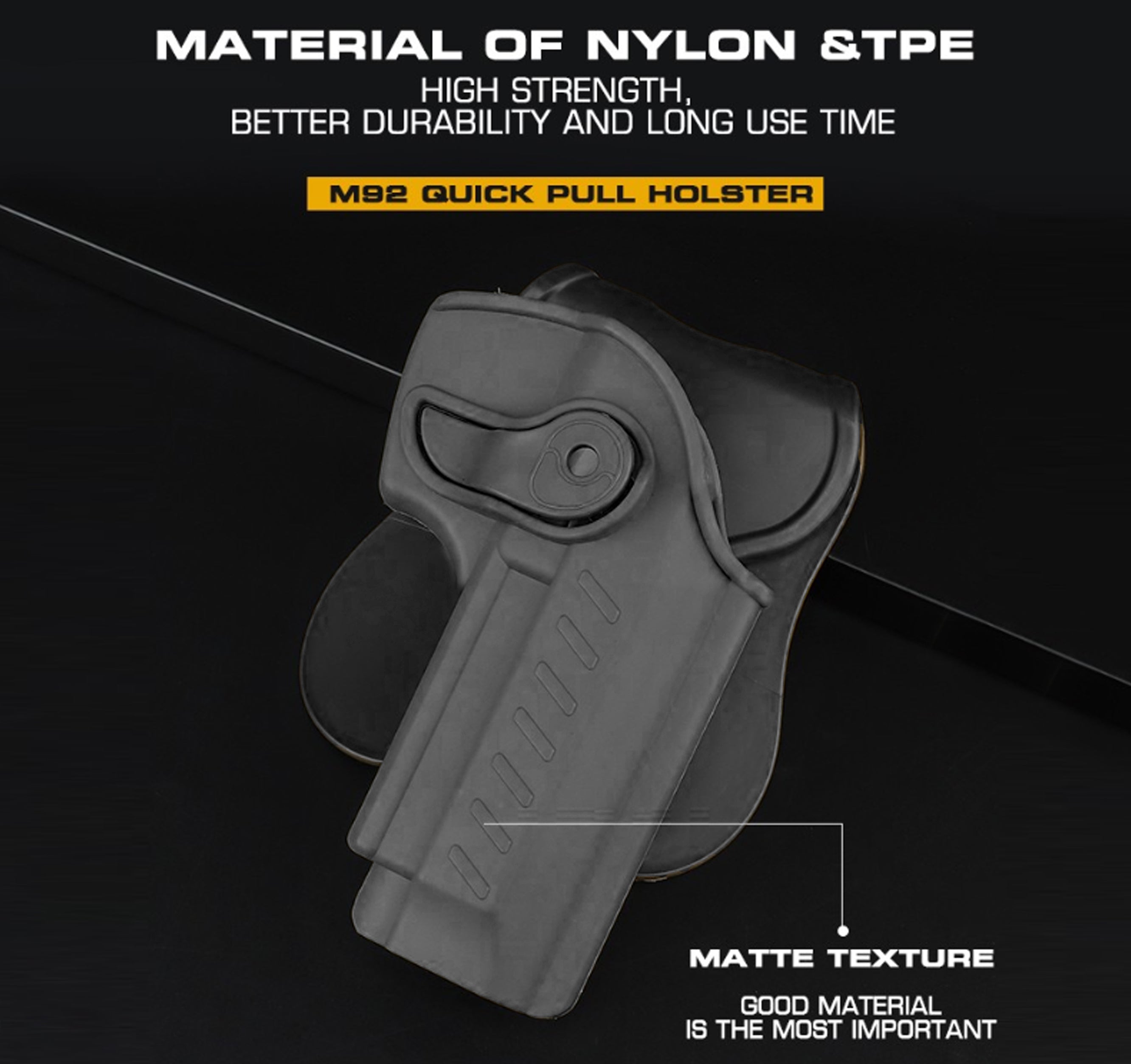 Furthermore, the M92 Quick Pull Airsoft Holster Black is built for durability, ensuring consistent performance in demanding situations. Moreover, its lightweight design allows for easy maneuverability during gameplay. Additionally, the holster’s fast-access feature makes it perfect for players who need quick, reliable access to their sidearm. Therefore, this holster is ideal for airsoft enthusiasts or tactical professionals seeking a durable and effective solution for pistol storage.