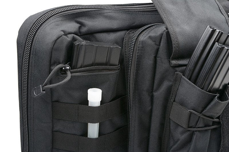 Furthermore, the Trimex 47″ Double Airsoft Rifle Bag includes multiple pockets, such as lockable front and side pouches, making it perfect for storing magazines and accessories. In addition, the sturdy carrying handle and adjustable shoulder straps offer two convenient carrying options. As a result, this bag is the ideal choice for anyone seeking both function and style. Therefore, it provides reliable protection and flexibility during transport.