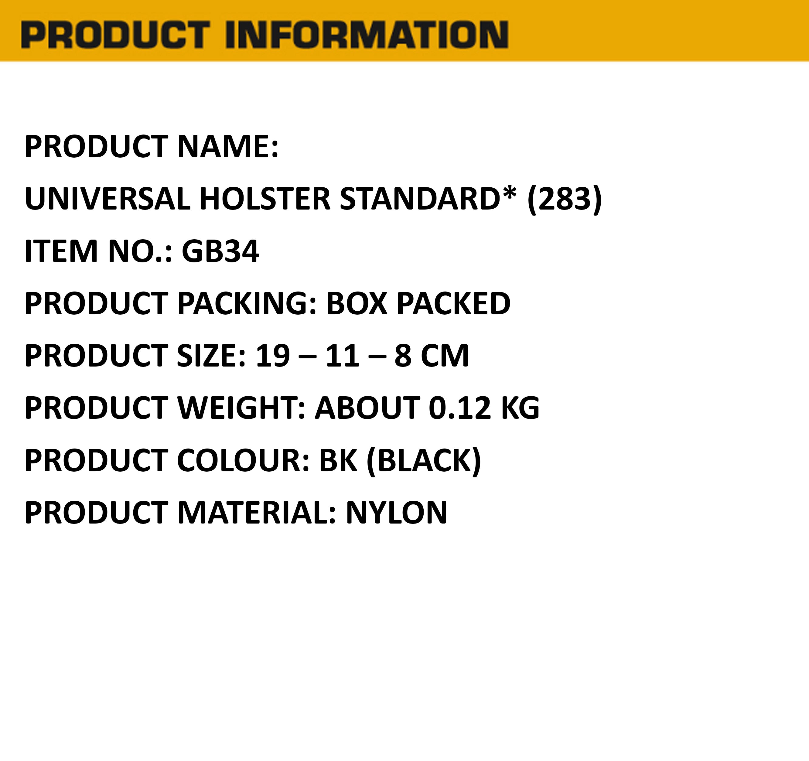 Wosport is a trusted name in airsoft accessories, known for its durable and reliable products. The Universal Holster 34 Standard 283 offers excellent compatibility, comfort, and security, making it a perfect choice for airsoft players looking for a versatile holster.